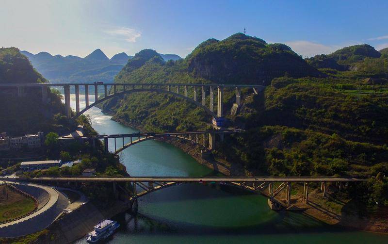 普定夜郎湖上跨三桥。